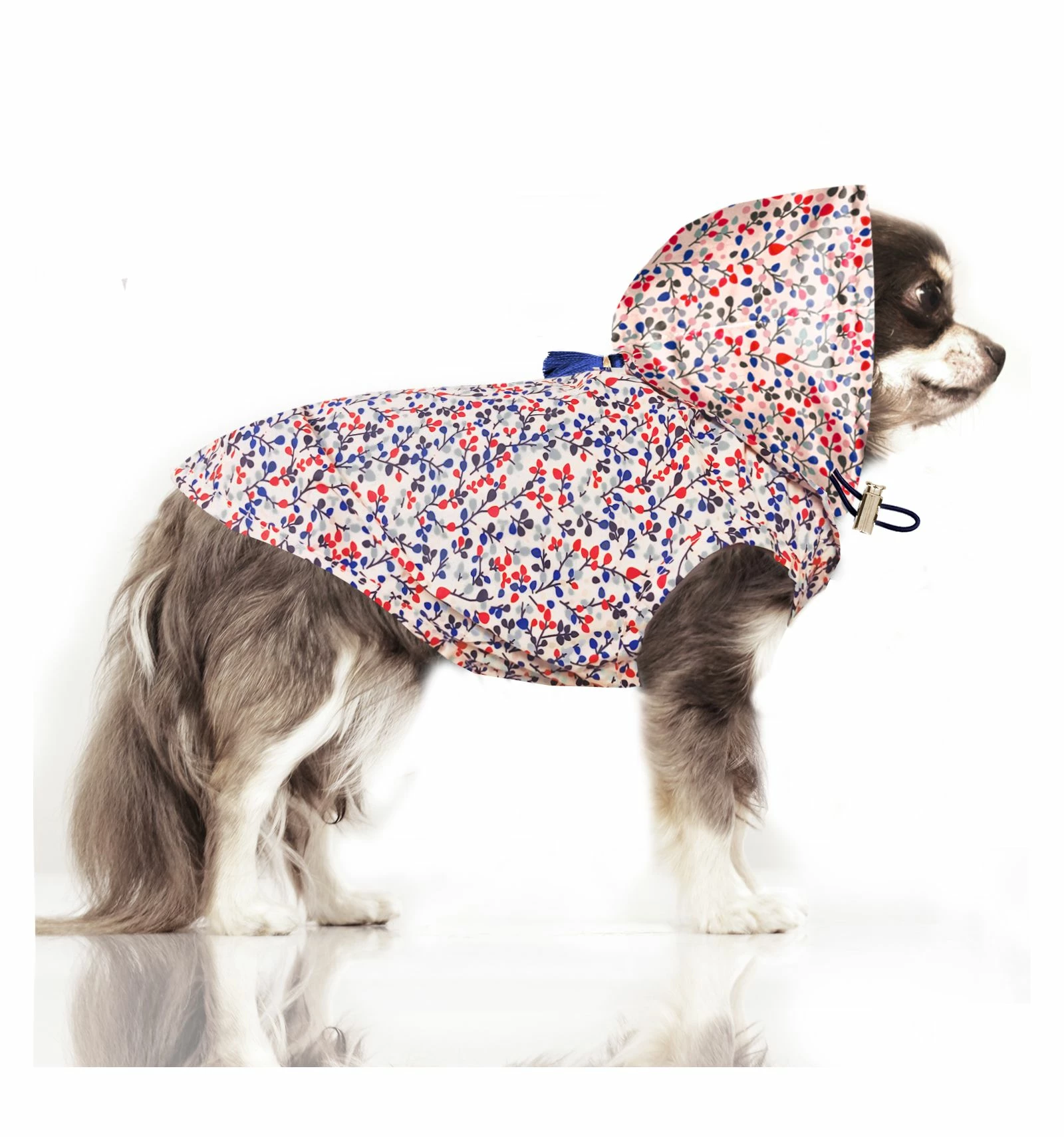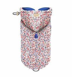 Au-delà de sa fonction contre la pluie, cet imperméable est élégant. Son imprimé floral rouge et bleu séduira tout le monde !