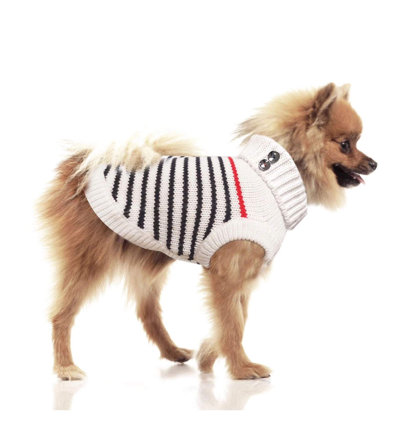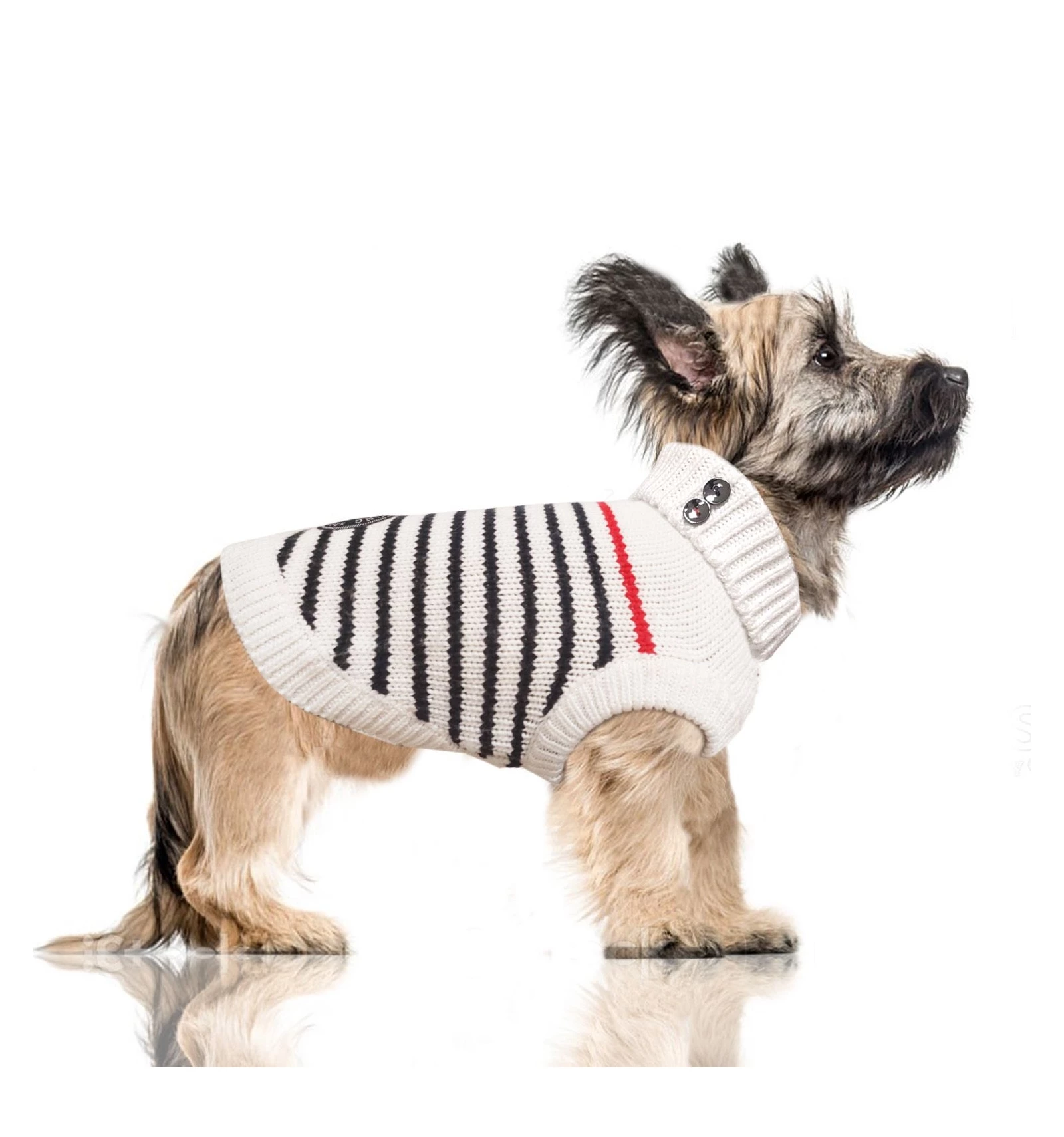 De couleur blanche et avec des rayures de couleurs bleues et rouge, votre chien aura sur lui un vêtement tendance et chic à la fois.
