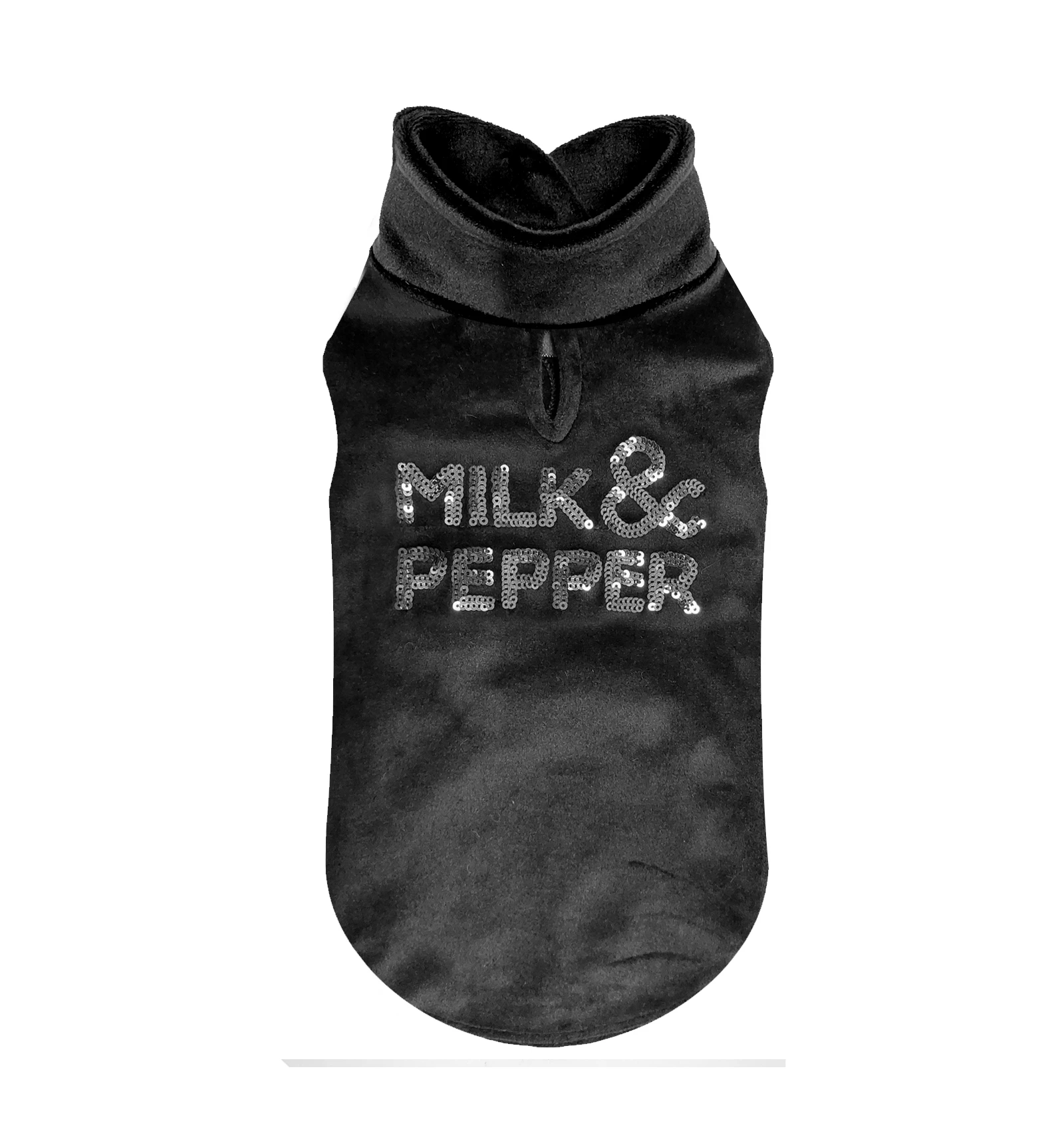 Découvrez le sweat OSLO de la marque Milk & Pepper. En velours, ce sweat tiendra au chaud votre chien, surtout si ce dernier a les poils courts.
